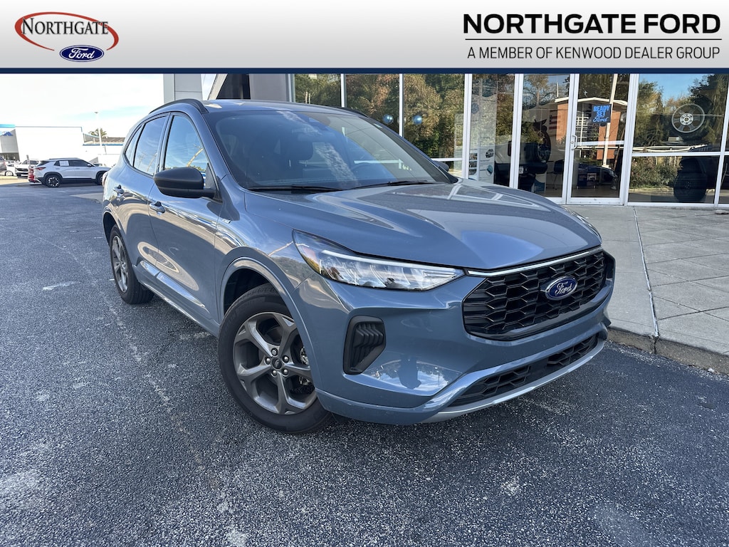 THIS VEHICLE ALSO HAS THE FOLLOWING OPTIONS AND FEATURES:Equipment Group 300A, Tech Pack #1 (Connected Built-In Navigation, Ford Co-Pilot360 Assist+, Intelligent Adaptive Cruise Control w/Stop-and-Go, Rear Parking Sensor, Rear-View Camera, Speed Sign Recognition, and SYNC 4 w/Enhanced Voice Recognition), Escape ST-Line, 4D Sport Utility, AWD, Ebony w/Heated Vinyl/Cloth Front Sport Contour Bucket Seats, AM/FM radio: SiriusXM, Auto High-beam Headlights, Automatic temperature control, Electronic Stability Control, Exterior Parking Camera Rear, Heated front seats, Power driver seat, Power Liftgate, Wheels: 18" Rock Metallic Painted Aluminum, 3.81 Axle Ratio, 4-Wheel Disc Brakes, 6 Speakers, ABS brakes, Air Conditioning, Alloy wheels, AM/FM Stereo, Brake assist, Bumpers: body-color, Compass, Delay-off headlights, Driver door bin, Driver vanity mirror, Dual front impact airbags, Dual front side impact airbags, Emergency communication system: SYNC 4 911 Assist, FordPass Connect, Four wheel independent suspension, Front & Rear Floor Liners w/Carpet Mats, Front anti-roll bar, Front Bucket Seats, Front Center Armrest, Front dual zone A/C, Front reading lights, Fully automatic headlights, Heated door mirrors, Heated steering wheel, Illuminated entry, Knee airbag, Low tire pressure warning, Occupant sensing airbag, Outside temperature display, Overhead airbag, Overhead console, Panic alarm, Passenger door bin, Passenger vanity mirror, Power door mirrors, Power steering, Power windows, Radio data system, Rear anti-roll bar, Rear reading lights, Rear seat center armrest, Rear window defroster, Rear window wiper, Remote keyless entry, Speed control, Speed-sensing steering, Speed-Sensitive Wipers, Split folding rear seat, Spoiler, Sport steering wheel, Steering wheel mounted audio controls, SYNC 4, Tachometer, Telescoping steering wheel, Tilt steering wheel, Traction control, Trip computer, Variably intermittent wipers, and Vinyl/Cloth Front Sport Contour Bucket Seats.