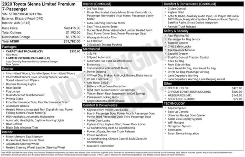 Certified Pre Owned 2020 ToyotaSienna XLE