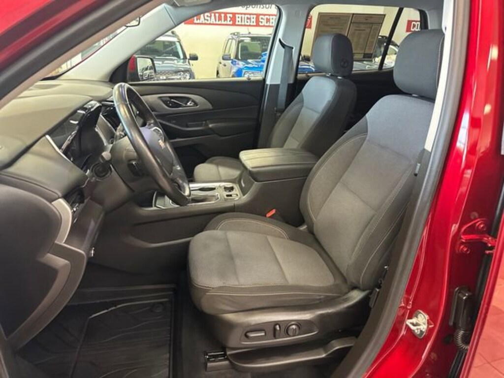 THIS VEHICLE ALSO HAS THE FOLLOWING OPTIONS AND FEATURES:Chevy Safety Assist (Automatic Emergency Braking, Automatic Heated Steering Wheel, Following Distance Indicator, Forward Collision Alert, Front Pedestrian Braking, IntelliBeam Auto High Beam Control Headlamps, and Lane Keep Assist w/Lane Departure Warning), Convenience & Driver Confidence Package (4.2" Multi-Color Enhanced Driver Instrument Display, Heated Driver & Front Passenger Seats, Lane Change Alert w/Side Blind Zone Alert, Radio: Chevrolet Infotainment 3 Plus System, Rear Cross Traffic Alert, Rear Park Assist w/Audible Warning, Rear Power Liftgate, Remote Start, SiriusXM w/360L, and Universal Home Remote), Preferred Equipment Group 1LT, Traverse LT 1LT, 4D Sport Utility, 3.6L V6 SIDI VVT, FWD, Jet Black w/Premium Cloth Seat Trim, 3rd row seats: split-bench, Apple CarPlay/Android Auto, Automatic temperature control, Electronic Stability Control, High-Intensity Discharge Headlights, Wheels: 18" Bright Silver Painted Aluminum, 3.49 Axle Ratio, 4-Wheel Disc Brakes, 6 Speakers, 7-Passenger Seating (2-2-3 Seating Configuration), ABS brakes, Air Conditioning, Alloy wheels, AM/FM radio: SiriusXM, Brake assist, Bumpers: body-color, Compass, Delay-off headlights, Driver door bin, Driver vanity mirror, Dual front impact airbags, Dual front side impact airbags, Emergency communication system: OnStar and Chevrolet connected services capable, Four wheel independent suspension, Front anti-roll bar, Front Bucket Seats, Front Center Armrest, Front dual zone A/C, Front fog lights, Front reading lights, Fully automatic headlights, Heated door mirrors, Illuminated entry, Leather steering wheel, Low tire pressure warning, Occupant sensing airbag, Outside temperature display, Overhead airbag, Overhead console, Panic alarm, Passenger door bin, Passenger vanity mirror, Power door mirrors, Power driver seat, Power steering, Power windows, Premium Cloth Seat Trim, Radio data system, Radio: Chevrolet Infotainment System AM/FM Stereo, Rear