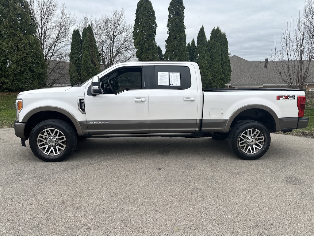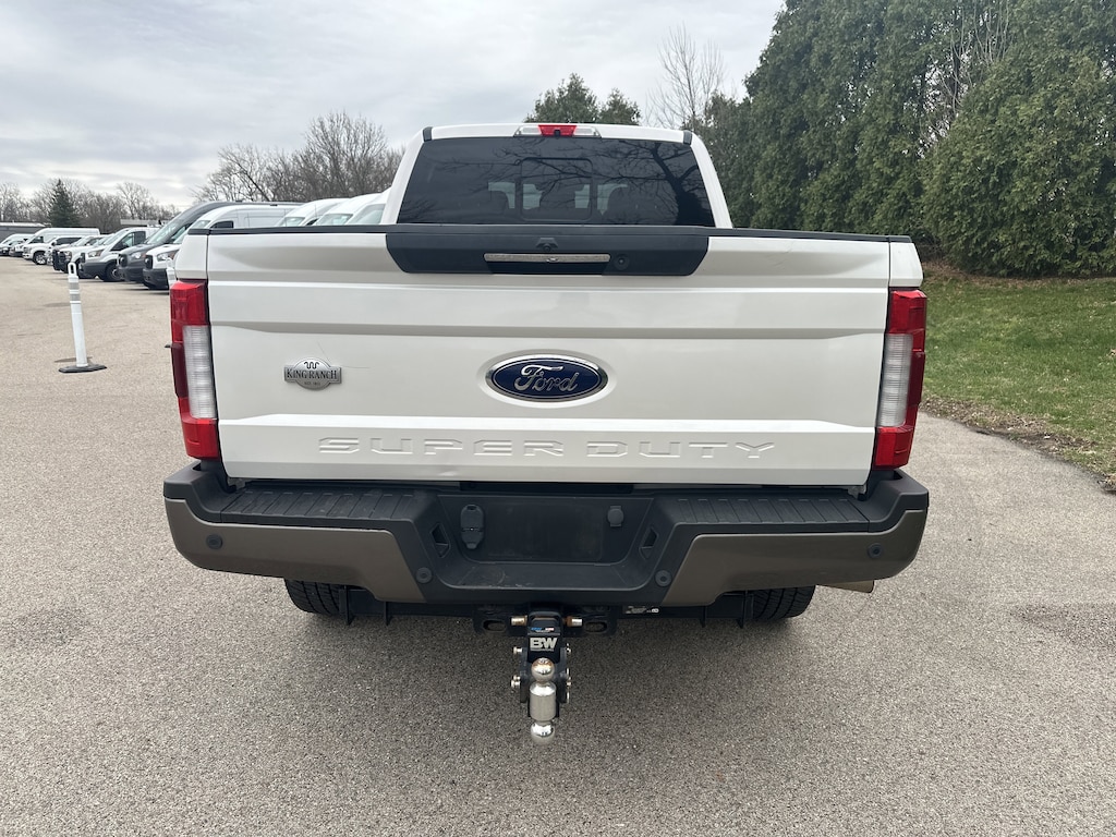 Sunroof/Moonroof, Voice Activated Navigation, Rear View Camera, Back Up Alarm System, Touch Screen, Handsfree Calling/Bluetooth, USB/AUX Ports, Blind Spot Monitoring System, Diesel, Trailer Tow Package, Non-Smoker, Remote Start, Satellite Radio, Heated Leather Seats, Local Trade, 4WD, 110V/400W Outlet, Automatic temperature control, BLIS Blind Spot Information System, Dual front side impact airbags, Electronic-Locking w/3.55 Axle Ratio, Emergency communication system: SYNC 3 911 Assist, Exterior Parking Camera Rear, Front fog lights, FX4 Off-Road Package, Hill Descent Control, King Ranch Ultimate Package, Low tire pressure warning, Memory seat, Multi-Contour Seats, Navigation System, Off-Road Specifically Tuned Shock Absorbers, Pedal memory, Power-Deployable Running Boards, Quad Beam LED Headlamps & LED Taillamps, Radio: B&O Sound System by Bang & Olufsen, Rear Parking Sensors, Security system, SiriusXM Radio, Speed control, Split folding rear seat, Steering wheel memory, Steering wheel mounted A/C controls, Steering wheel mounted audio controls, SYNC 3 Communications & Entertainment System, Tailgate Step & Handle, Telescoping steering wheel, Tilt steering wheel, Turn signal indicator mirrors, Twin Panel Power Moonroof, Unique FX4 Off-Road Box Decal, Wheels: 18" Bright Machined Cast Aluminum.