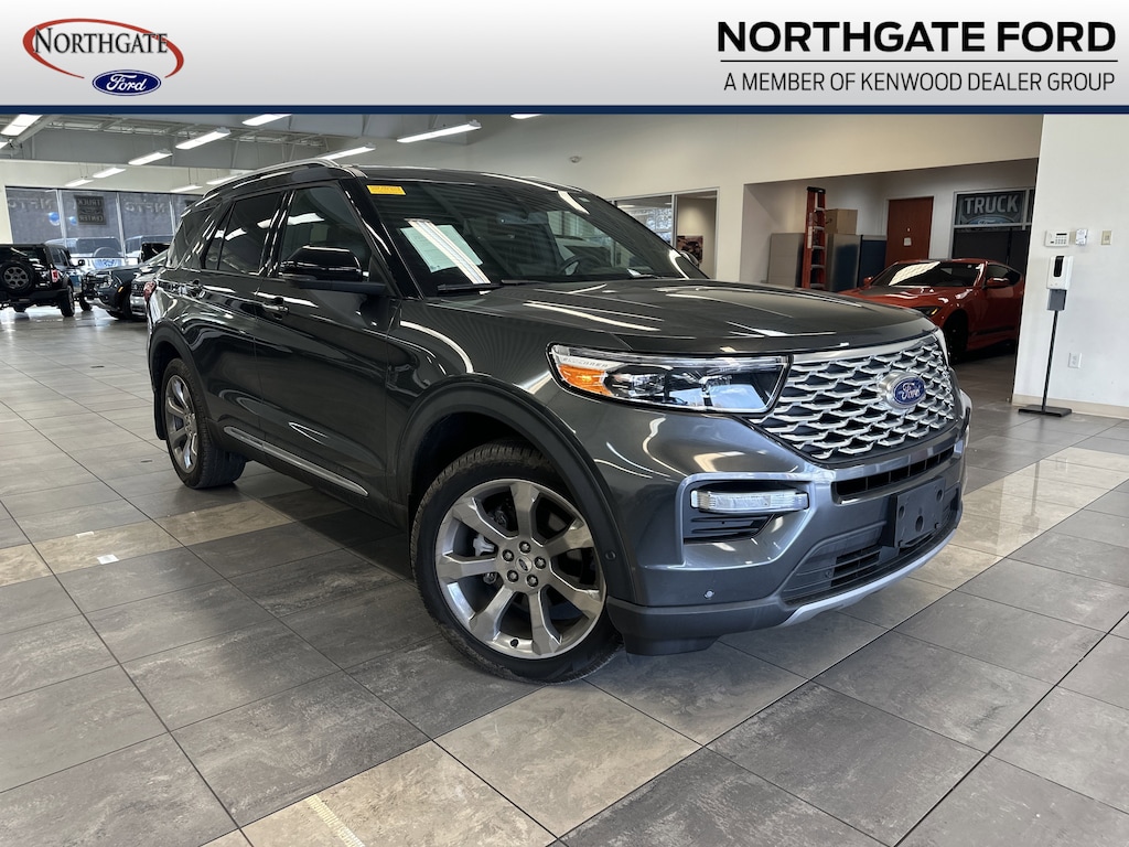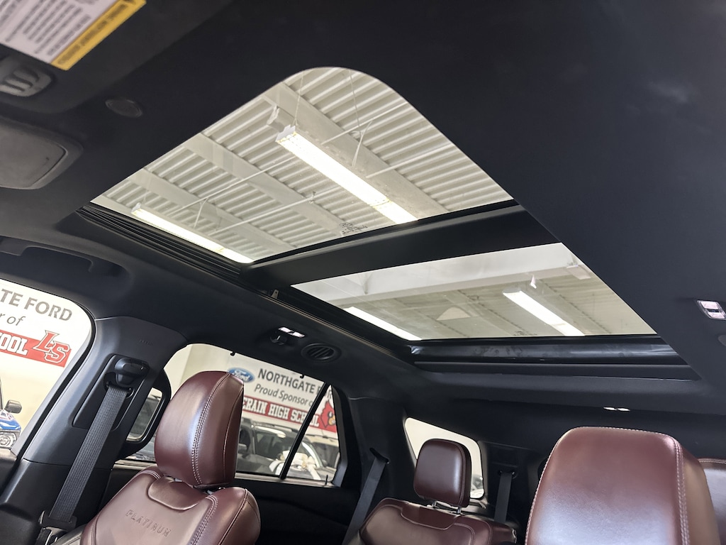 THIS VEHICLE ALSO HAS THE FOLLOWING OPTIONS AND FEATURES:Equipment Group 600A, Premium Technology Package (10.1" LCD Capacitive Portrait Touchscreen, 2 Additional Speakers, and Leather Htd/Ventilated Sport Captain's Chairs), Explorer Platinum, 4D Sport Utility, 3.0L EcoBoost V6, 4WD, Auto High-beam Headlights, Automatic temperature control, Exterior Parking Camera Rear, FordPass Connect, Memory seat, Navigation System, Power Liftgate, Power moonroof, Radio: B&O Sound System by Bang & Olufsen, SYNC 3 Communications & Entertainment System, Voice-Activated Touchscreen Navigation System, Wheels: 21" Premium Polished Aluminum, 12 Speakers, 3.31 Non-Limited-Slip Axle Ratio, 3rd row seats: bench, 4-Wheel Disc Brakes, ABS brakes, Air Conditioning, Alloy wheels, AM/FM radio: SiriusXM, Auto-dimming door mirrors, Auto-dimming Rear-View mirror, Brake assist, Bumpers: body-color, Compass, Delay-off headlights, Driver door bin, Driver vanity mirror, Dual front impact airbags, Dual front side impact airbags, Electronic Stability Control, Emergency communication system: SYNC 3 911 Assist, Four wheel independent suspension, Front anti-roll bar, Front Bucket Seats, Front Center Armrest, Front dual zone A/C, Front fog lights, Front reading lights, Fully automatic headlights, Garage door transmitter: HomeLink, Genuine wood dashboard insert, Heated door mirrors, Heated front seats, Heated rear seats, Heated steering wheel, Illuminated entry, Knee airbag, Leather steering wheel, Low tire pressure warning, Occupant sensing airbag, Outside temperature display, Overhead airbag, Overhead console, Panic alarm, Passenger door bin, Passenger vanity mirror, Power door mirrors, Power driver seat, Power passenger seat, Power steering, Power windows, Radio data system, Rain sensing wipers, Rear air conditioning, Rear anti-roll bar, Rear reading lights, Rear window defroster, Rear window wiper, Remote keyless entry, Roof rack: rails only, Security system, Speed control, Speed-sensing steering, Speed-Sensitive Wipers, Split folding rear seat, Spoiler, Steering wheel memory, Steering wheel mounted audio controls, SYNC 3/Apple CarPlay/Android Auto, Tachometer, Telescoping steering wheel, Tilt steering wheel, Traction control, Trip computer, Turn signal indicator mirrors, Variably intermittent wipers, and Ventilated front seats.