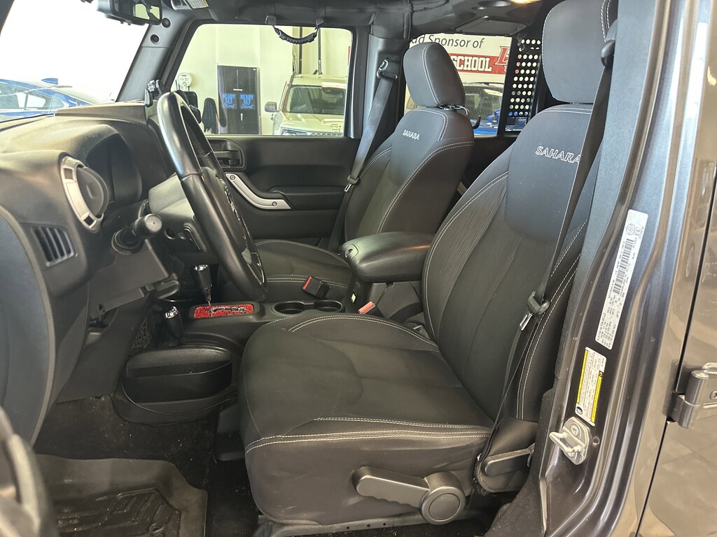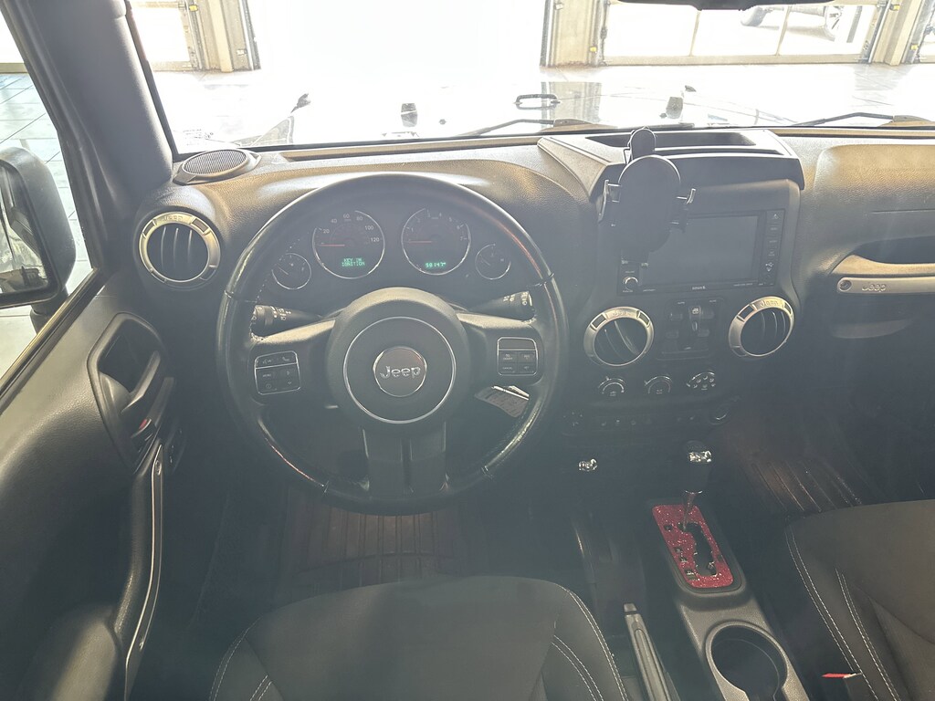 THIS VEHICLE ALSO HAS THE FOLLOWING OPTIONS AND FEATURES:Connectivity Group (Leather Wrapped Steering Wheel, Remote USB Port, Tire Pressure Monitoring Display, Uconnect Voice Command w/Bluetooth, and Vehicle Information Center), Quick Order Package 24G (Body Color Appliques Front Bumper, Body Color Appliques Rear Bumper, and Body Color/Accent Color Grille), Wrangler Unlimited Sahara, 4D Sport Utility, 3.6L V6 24V VVT, 4WD, 40GB Hard Drive w/28GB Available, 8 Speakers, AM/FM radio: SiriusXM, Audio Jack Input for Mobile Devices, Electronic Stability Control, Front fog lights, GPS Navigation, Heated Front Seats, Heavy Duty Suspension w/Gas Shocks, Sunrider Soft Top, 3.21 Rear Axle Ratio, 4-Wheel Disc Brakes, 5-Year SiriusXM Travel Link Service, 6.5" Touchscreen Display, ABS brakes, Air Conditioning, Alloy wheels, Auto-dimming Rear-View mirror, Brake assist, CD player, Cloth Seats w/Adjustable Head Restraints, Compass, Driver door bin, Driver vanity mirror, Dual front impact airbags, Front anti-roll bar, Front Bucket Seats, Front Center Armrest w/Storage, Front reading lights, Fully automatic headlights, Heated door mirrors, Illuminated entry, Integrated roll-over protection, Leather steering wheel, Low tire pressure warning, Occupant sensing airbag, Outside temperature display, Panic alarm, Passenger door bin, Passenger vanity mirror, Power door mirrors, Power steering, Power windows, Radio data system, Radio: 130, Radio: 430N, Rear anti-roll bar, Remote keyless entry, Remote Start System, Security system, SiriusXM Travel Link, Speed control, Split folding rear seat, Steering wheel mounted audio controls, Tachometer, Tilt steering wheel, Traction control, Trip computer, and Variably intermittent wipers.